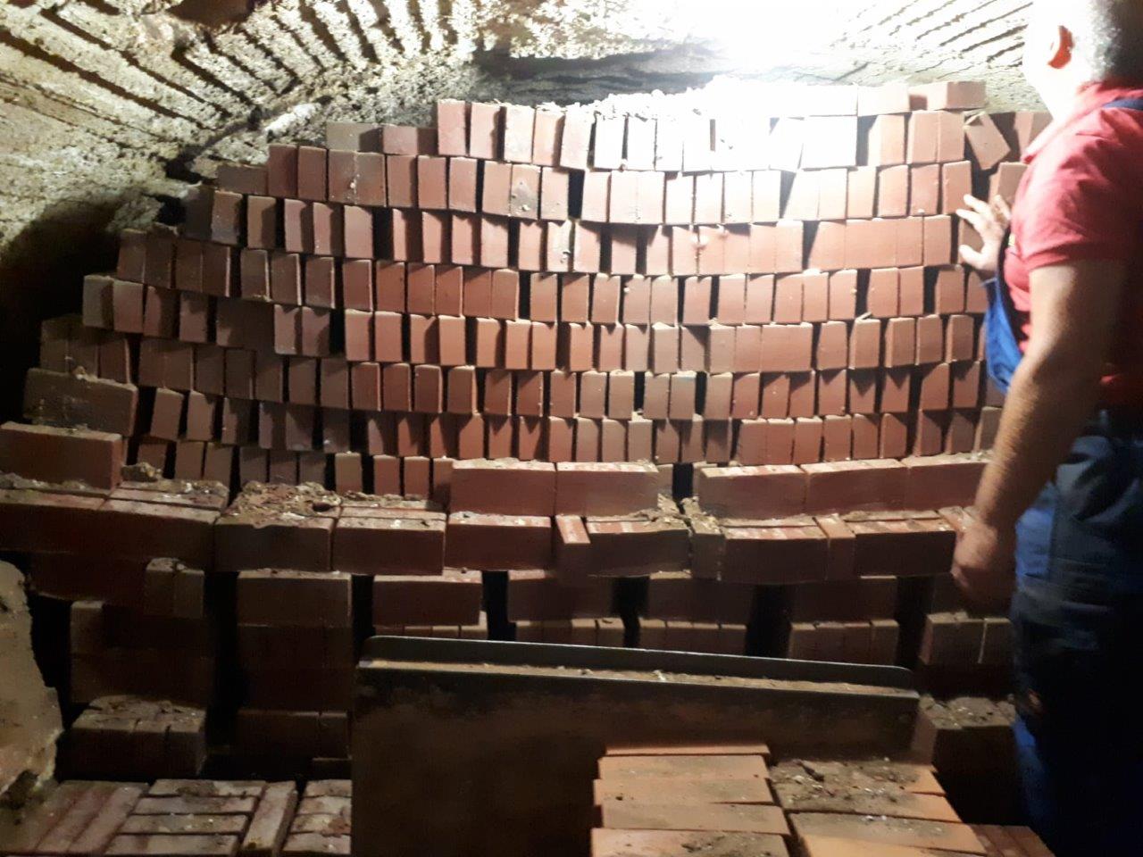 Bei bis zu 1200°C werden die Rohlinge in ca. 16 Tagen zu vollwertigen Klinkersteinen gebrannt. Der Ringofen wird dafür Tag für Tag per Hand über Deckenluken befüllt. Es vergeht dabei kein Tag im Jahr, an dem der Ofen nicht brennt.